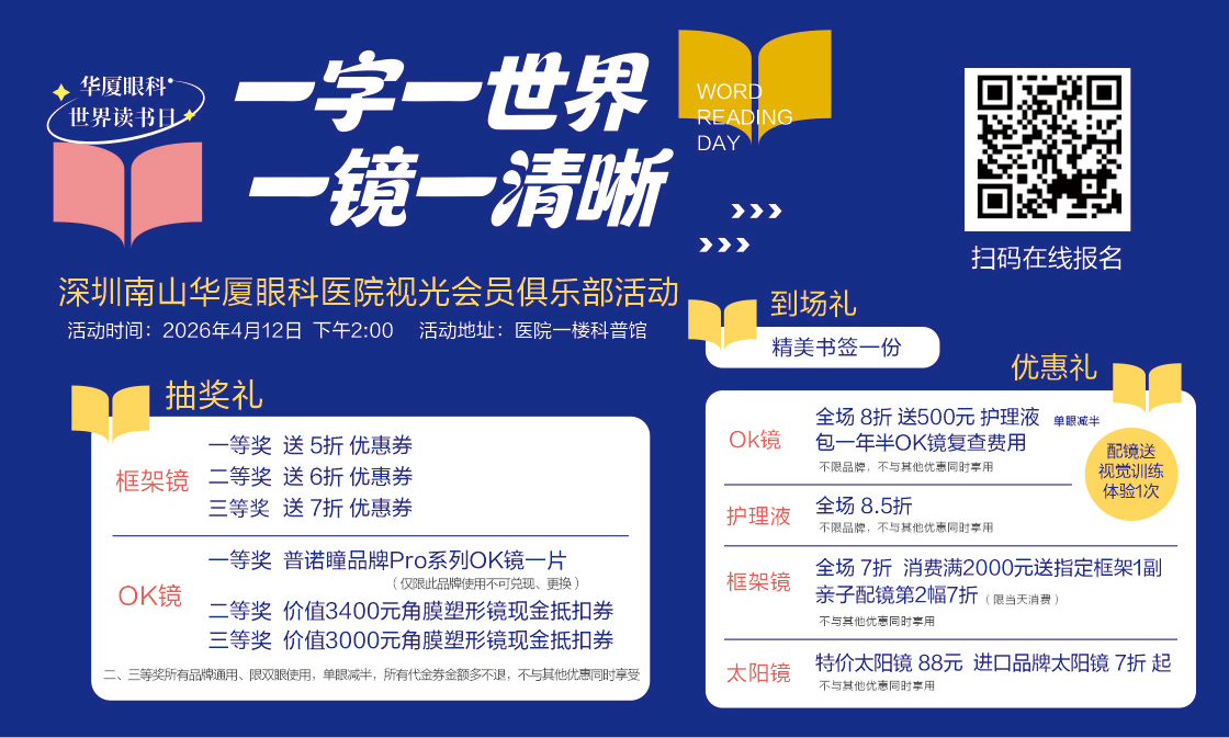 4月26日下午2:00,深圳南山华厦眼科医院精心筹备的一字一世界 一镜一清晰视光会员活动。
